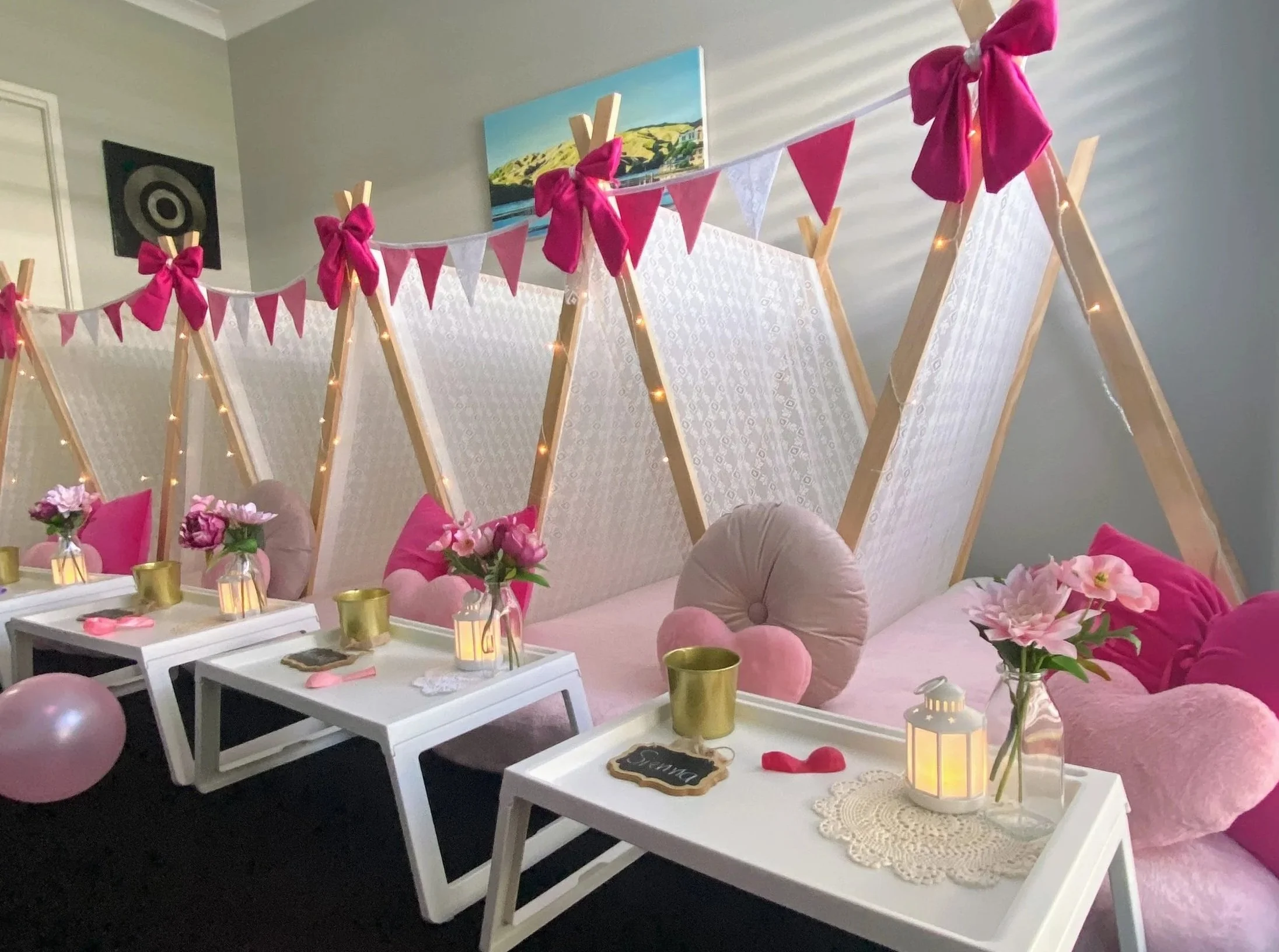 Delicate, dreamy and effortlessly beautiful, our Beautiful Bows Sleepover Party is perfect for a truly special celebration. Featuring soft tones, elegant styling and sweet bow details, this theme creates a pretty sleepover space that feels both luxurious and cosy.